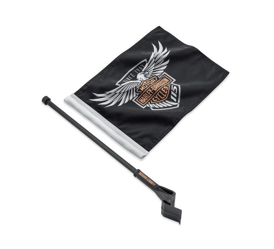Флаговый комплект ограниченной серии Harley-Davidson 115th Anniversary Limited Edition. Устанавливается на модели Touring и Tri Glide с 14-го года выпуска с соответствующими по цвету багажниками Tour-Pak. Крепление Тур-Пак