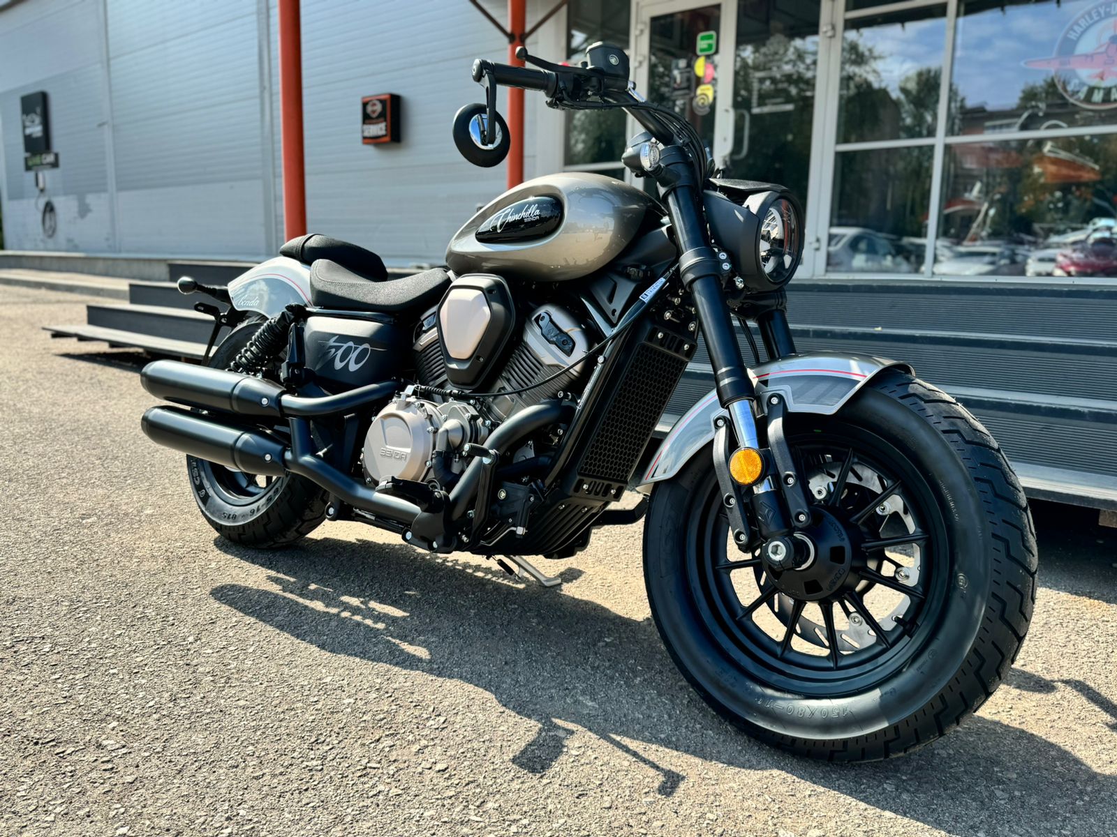 На переднем колесе Chinchilla 500 установлен 320-миллиметровый тормозной диск, работающий в паре с четырёхпоршневым радиальным суппортом, на заднем – диск диаметром 260 мм и двухпоршневой суппорт. Тормозная система эффективно замедляет круизер снаряжённой массой всего 198 кг, в экстренном случае райдера подстрахует антиблокировочная система тормозов.