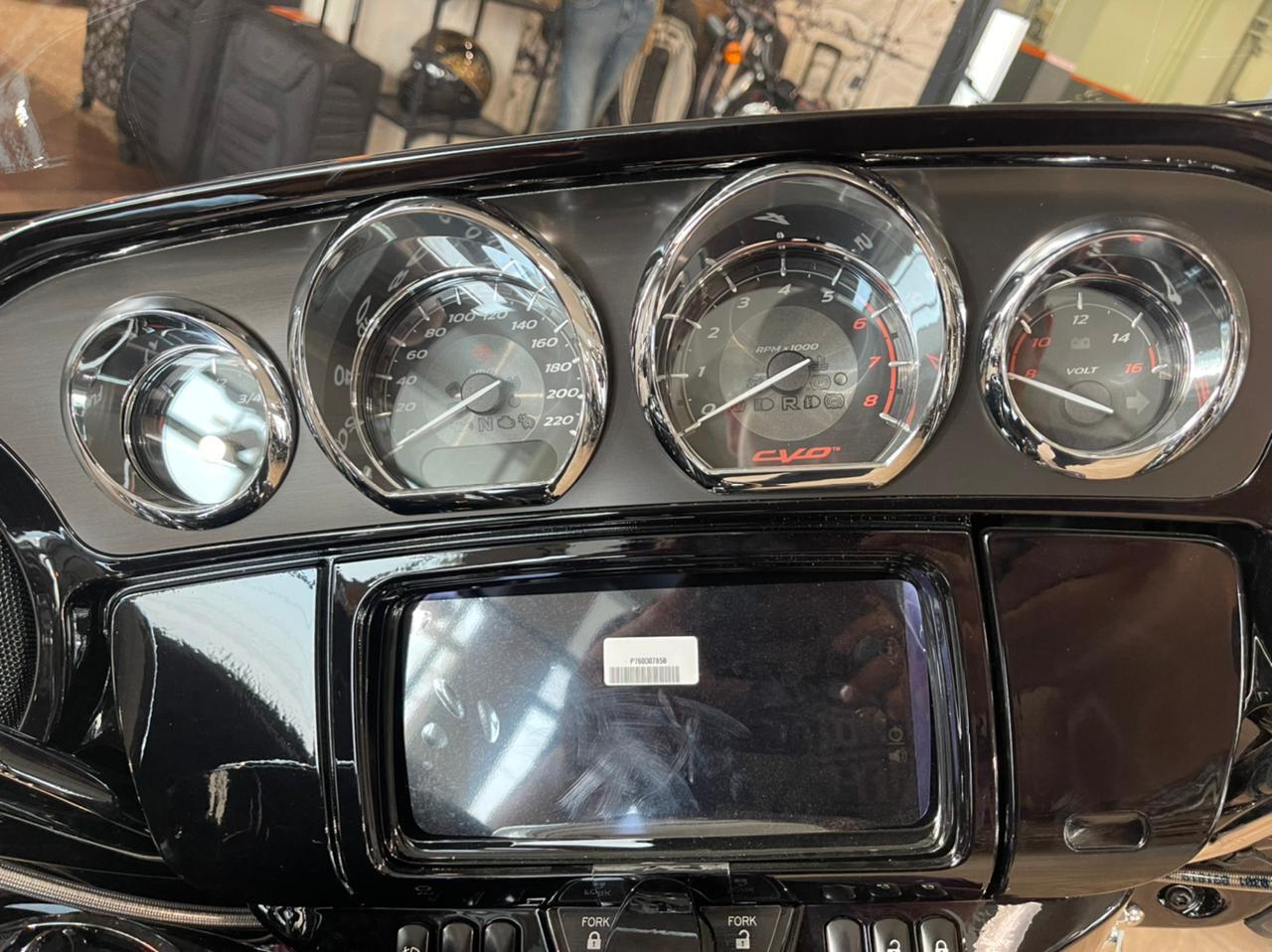 | КОНТРОЛЬНЫЕ ПРИБОРЫ | Кастомная панель приборов дополняет каждый из мотоциклов CVO. На дисплее отображается одометр, маршрут А, маршрут Б, запас хода по топливу и индикатор включенной передачи, а также большой индикатор заднего хода. |