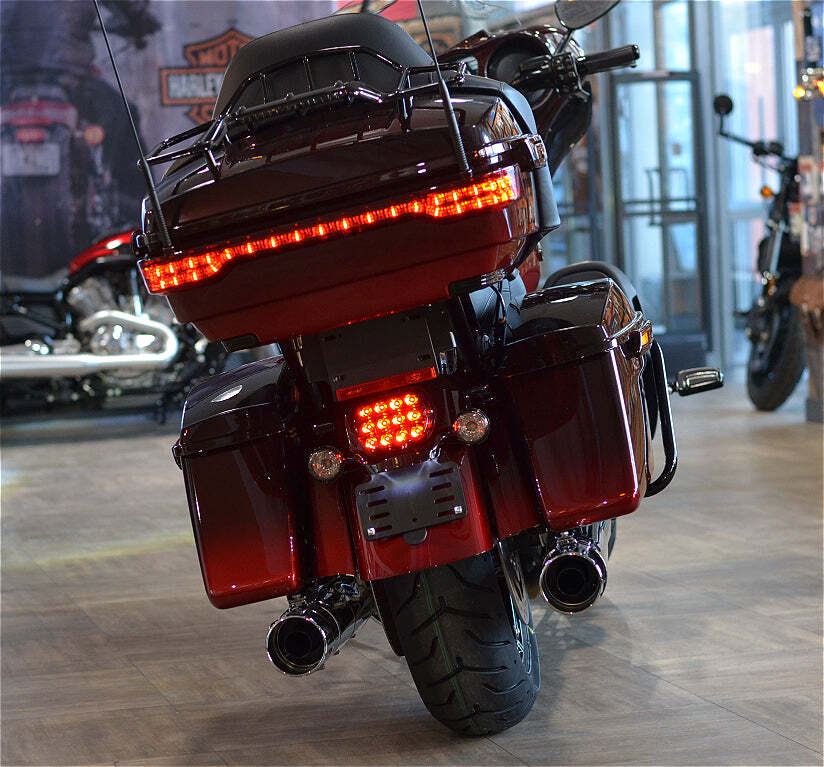 Если Вы хотите наш самый мощный двигатель, информационно-развлекательную систему BOOM!™ Box 6.5 GT, самое роскошное лакокрасочное покрытие и максимум комфорта для себя и своего пассажира, то Вам имеет смысл обратить внимание на CVO™ Limited. Вы получите мощный двигатель Twin-Cooled™ Milwaukee-Eight® 117, переднюю вилку Double Bending Valve и эмульсионные задние амортизаторы с регулятором предварительного нагружения, воздухозаборник Splitstream, окрашенный в цвет мотоцикла, светодиодную полосу багажника на кофре Tour-Pak™, светодиодные указатели поворота и светодиодную круговую подсветку. Вы также получите кастомный чехол седла со вставками и вышивкой, которые не найдете нигде больше, две беспроводных гарнитуры и штатную охранную систему с пультом дистанционного управления. Здесь есть всё, включая систему контроля давления воздуха в шинах.
