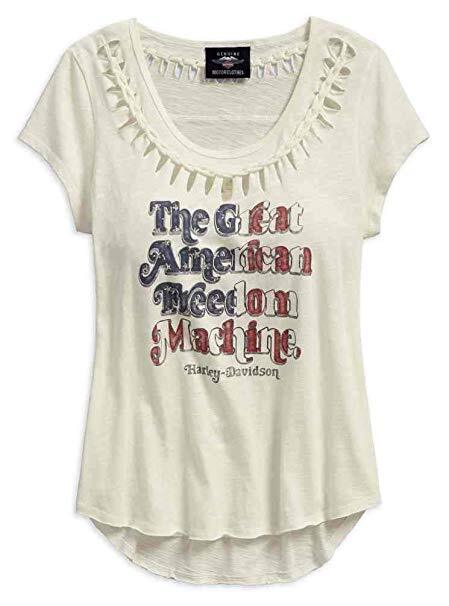 Футболка женская, спина и воротник украшены плетением, графика на груди