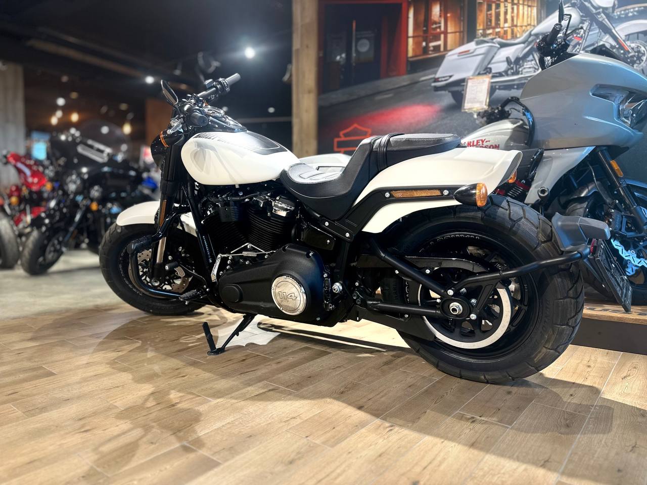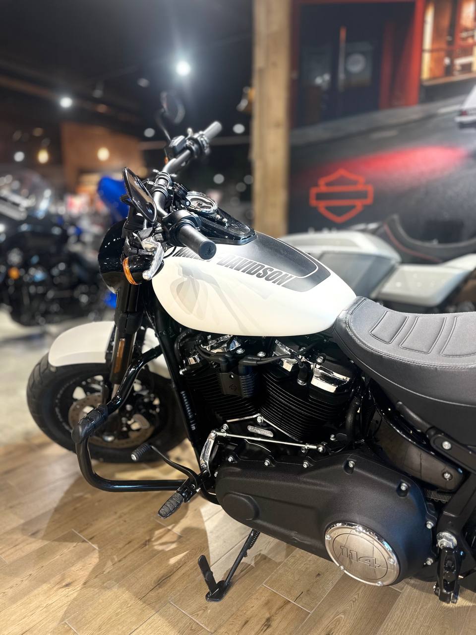 Есть такие вещи, сделать которые может только Harley-Davidson. И одна из них — это совершенно новый Fat Bob®. Сниженная на 10 кг масса, внушительная мощь двигателя Milwaukee-Eight®, непревзойдённое сцепление шин с дорогой, энергоёмкая подвеска, высокая маневренность и бескомпромиссный внешний вид. Вы получаете систему выпуска 2-1-2 с приподнятыми глушителями, уникальную ассиметричную графику на баке, вилку перевернутого типа, массивные шины с агрессивным рисунком протектора и модернизированную раму Softail®. Мотоцикл выглядит так, словно на нём можно покорить весь мир и сделать это быстро. Садитесь в седло!