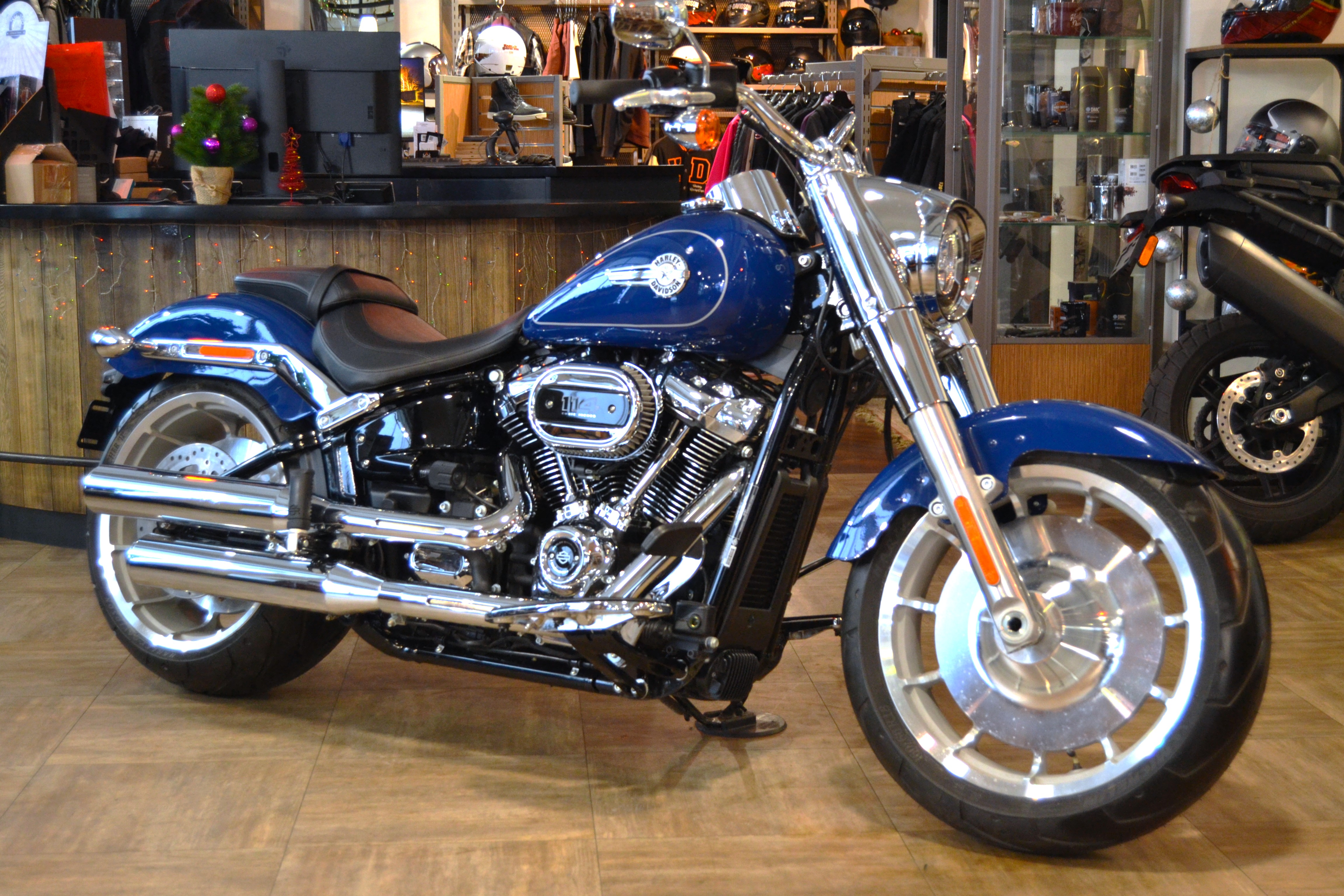 Обновленный Harley-Davidson Softail, Fat Boy 114 (FLFBS) 2024 модельного года, в цвете (Bright Billiard Blue). От официального дилера Harley-Davidson Новосибирск.