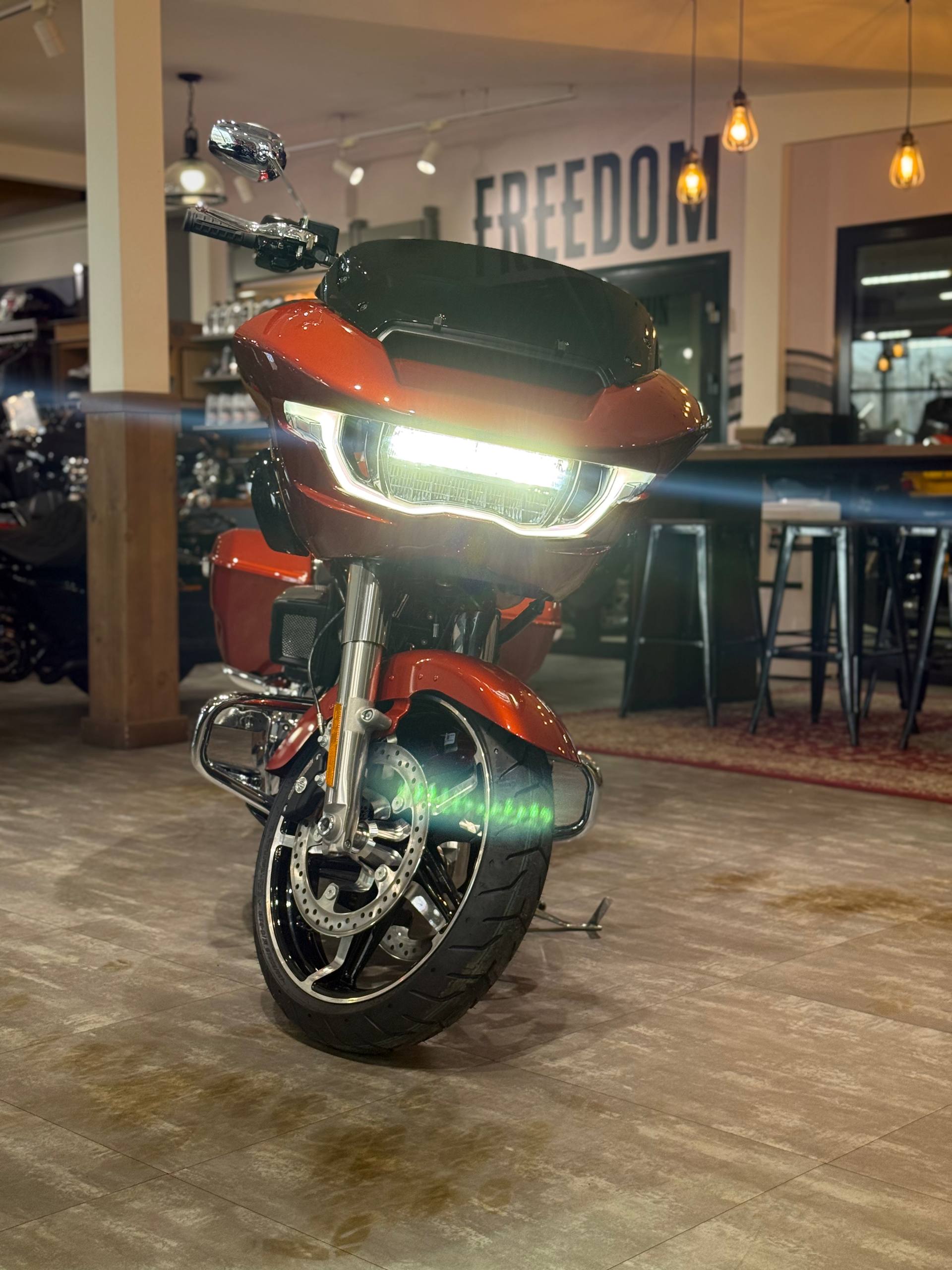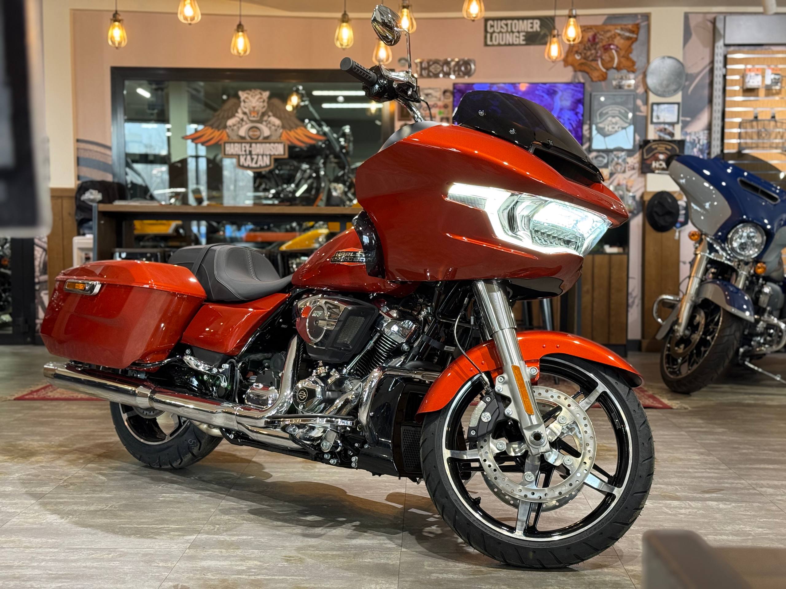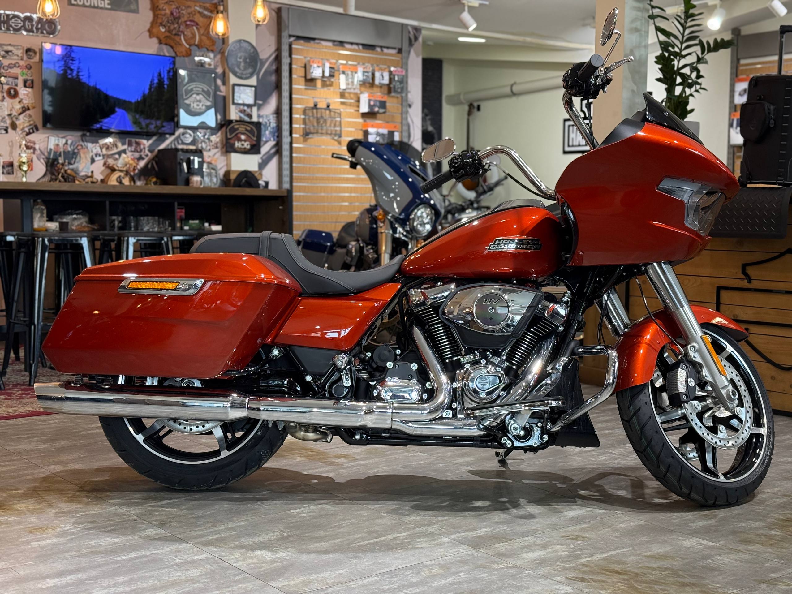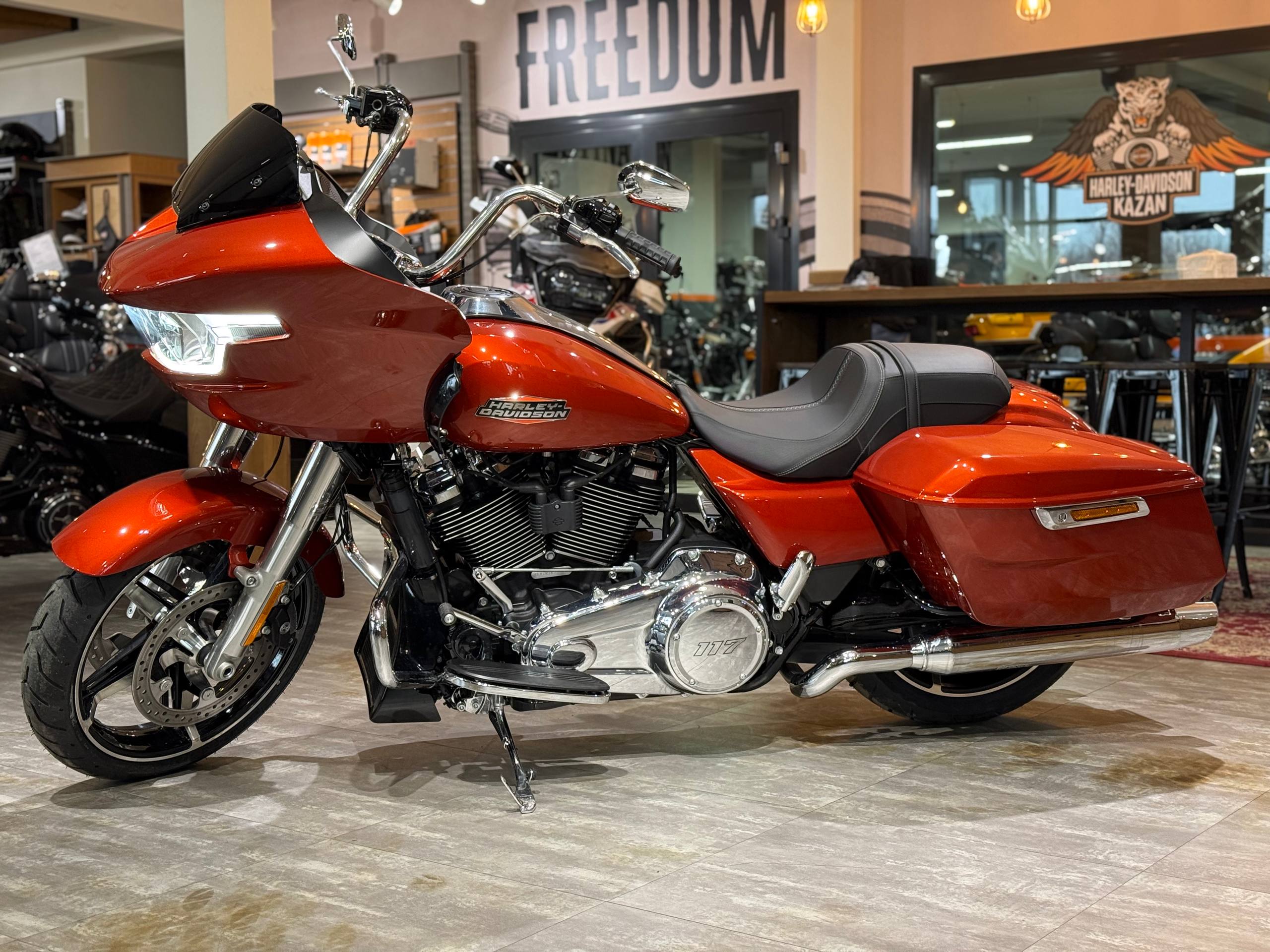 Harley-Davidson Road Glide 117, 2024 года в цвете "Whiskey Fire/Chrome Trim"
