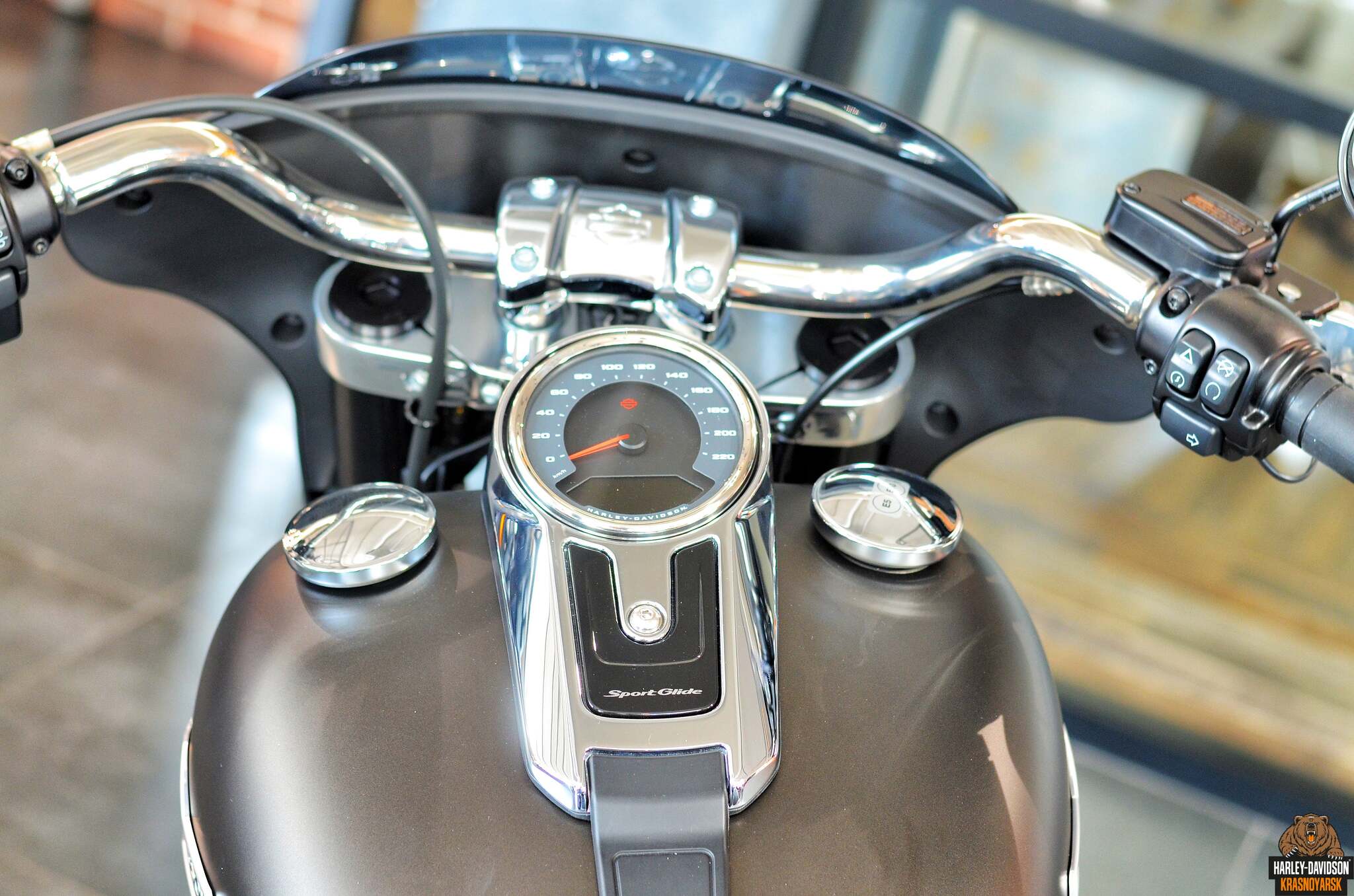 Новый мотоцикл, Harley-Davidson® Softail® Sport Glide™ (FLSB) 2020 модельного года, в цвете River Rock Gray Denim от официального дилера Harley-Davidson® Красноярск.