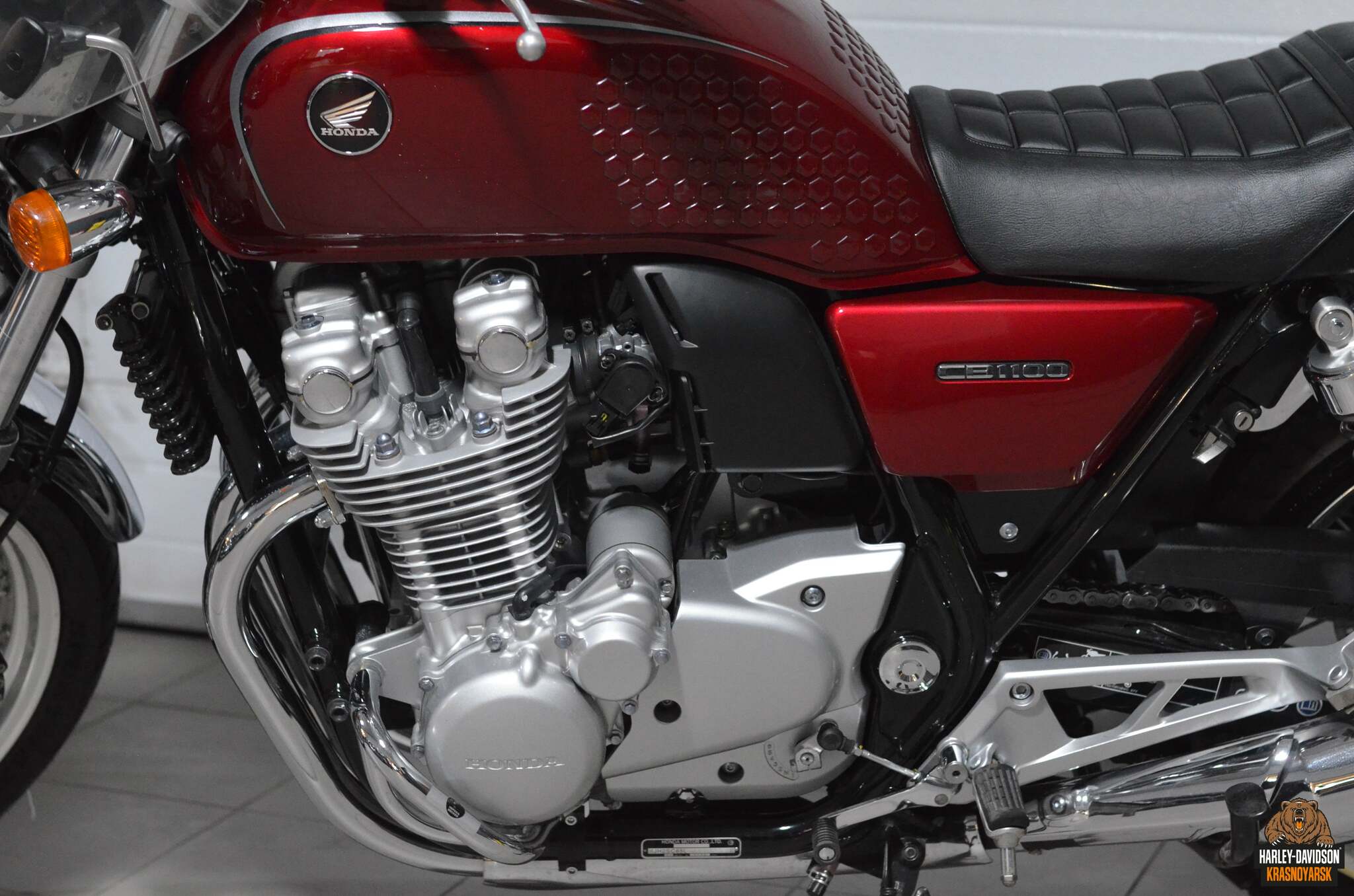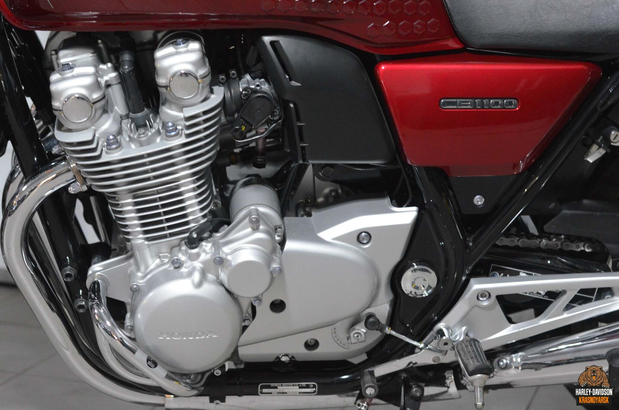 Четырёхцилиндровый мотор обладает отличной ровной тягой во всём диапазоне оборотов. Мощность для 1140 кубов объёма невелика — 90 лошадиных сил, зато за счёт этого CB 1100 может похвастаться отличным крутящим момент