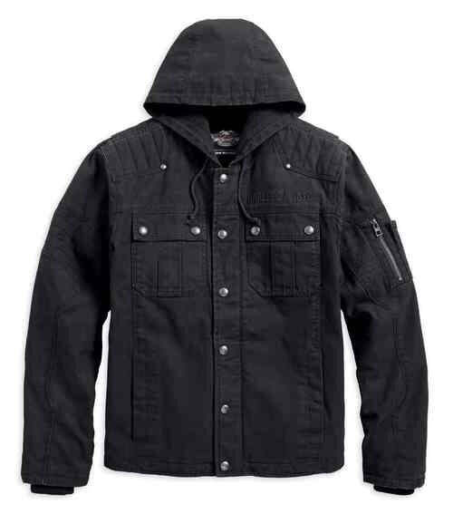 Мужская куртка с капюшоном Изготовлена из 100% хлопкового полотна со стеганым подкладкой для тела и подкладкой рукавов из полиэстера. Вентиляционные втулки под мышками. Двусторонняя молния спереди с штормовым клапаном на кнопке и капюшон. Два нагрудных кармана на кнопках. Потайной карман на молнии.