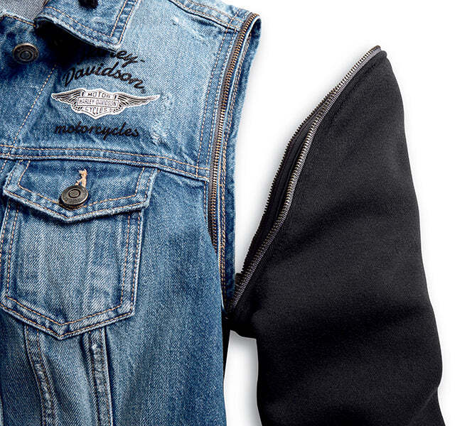 Джинсовая куртка с капюшоном, рукава отстегиваются