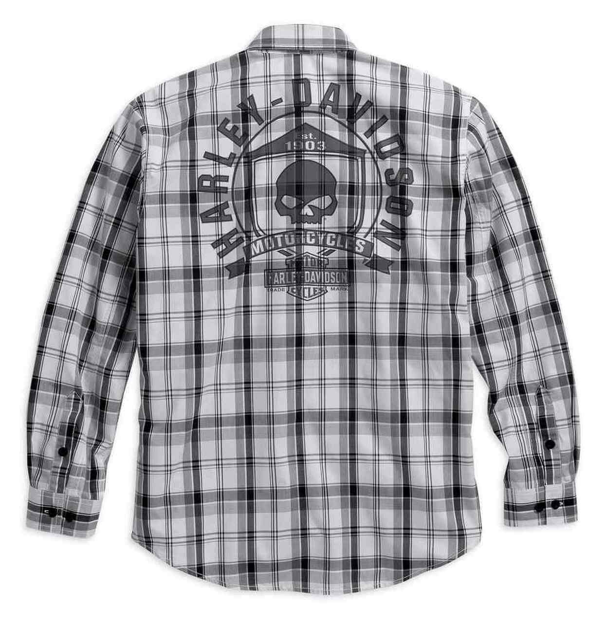 Яркая рубашка подчеркивает один из наших самых популярных дизайнов: череп Harley-Davidson. Клетчатая рубашка Skull Shield отлично смотрится с джинсами, хаки или карго.