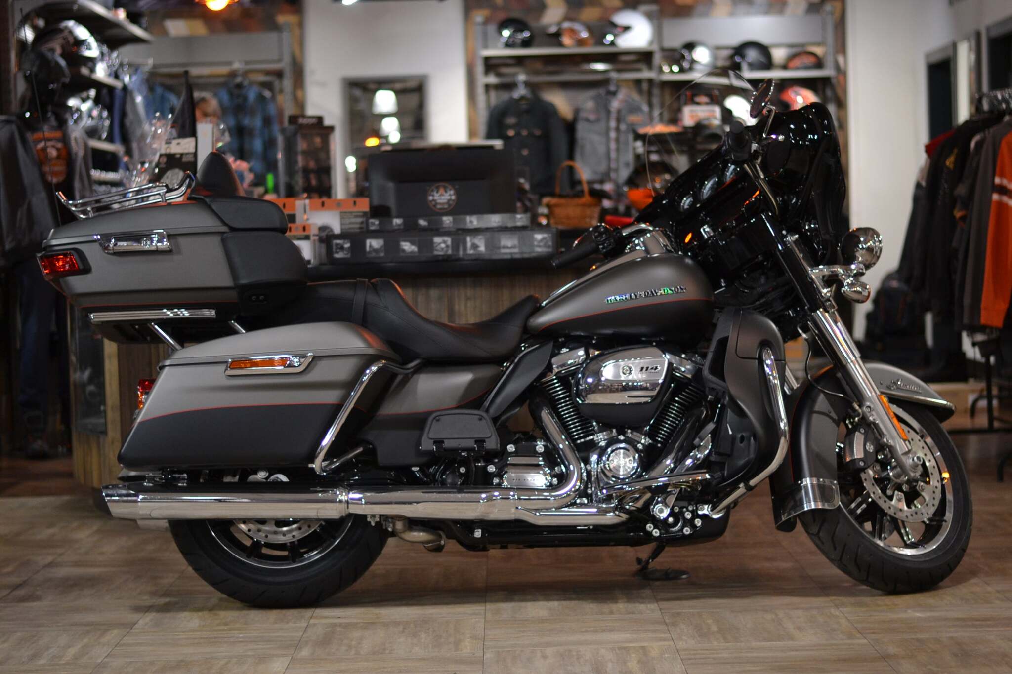 Новый Harley Davidson Ultra Limited 114 (FLHTK) 2019 года, в уникальном цвете Industrial Gray Denim / Black Denim от официального дилера Harley-Davidson Новосибирск.