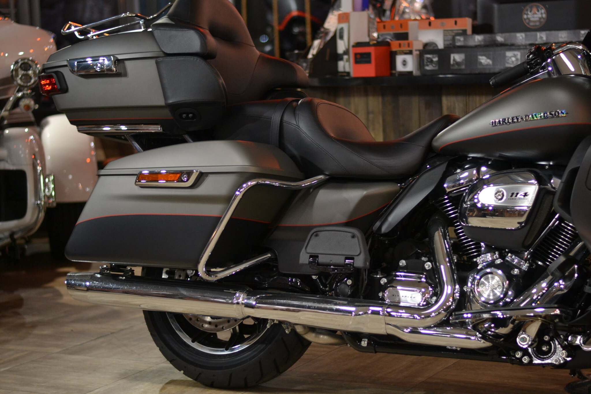 У Ultra Limited есть все необходимое – от нового двигателя Twin-Cooled™ Milwaukee-Eight® 114 (1868 см3) V-Twin до подогрева рукояток руля. Обтекатель Batwing с воздухозаборником Splitstream снижает воздействие встречного потока воздуха на голову водителя и оптимизирует воздушные потоки. Совершенно новая информационно-развлекательная система BOOM!™ GTS. Электронный круиз-контроль, тормоза Reflex™ Linked Brembo® с системой ABS, энергоемкая передняя и задняя подвеска, кофр Tour-Pak®, в котором легко поместятся два шлема типа интеграл. И многое другое. Да, можно иметь все и сразу.