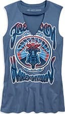 Футболка в стиле 70-х годов и декором, который включает проймы с необработанными краями и вырез спереди.